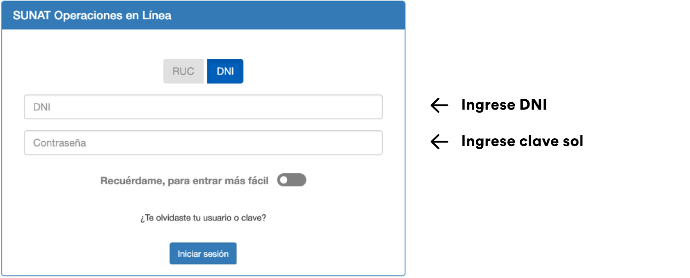 Tipo, número de documento y dar clic en “Validar RUC o DNI” para que aparezca el nombre o la razón social, verificar el nombre o razón social del Usuario. Clic en “Continuar”.