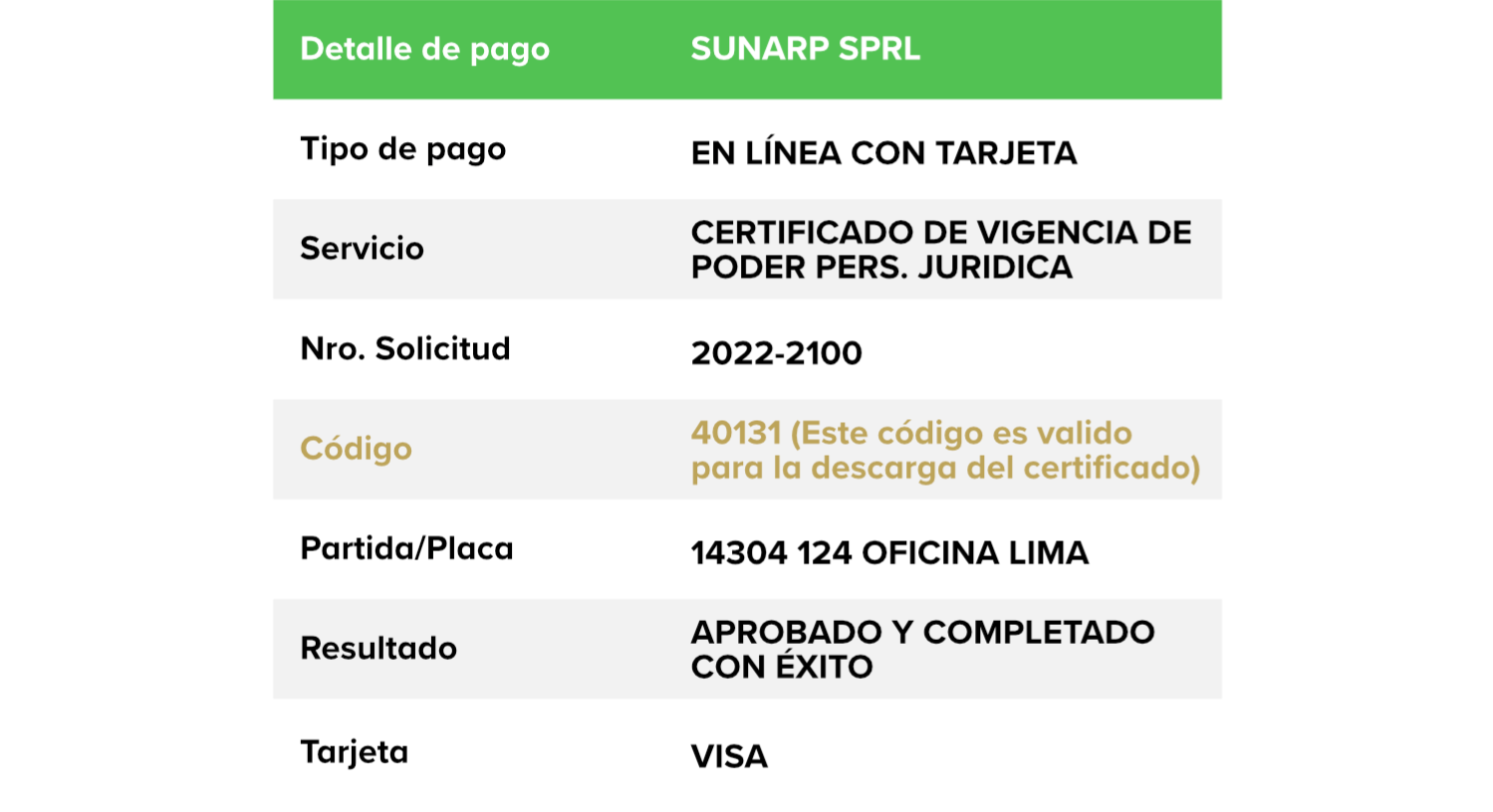 Con eso culminaremos el proceso de solicitud de vigencia poder. El certificado deberá llegar a su correo en 3 días hábiles como máximo.