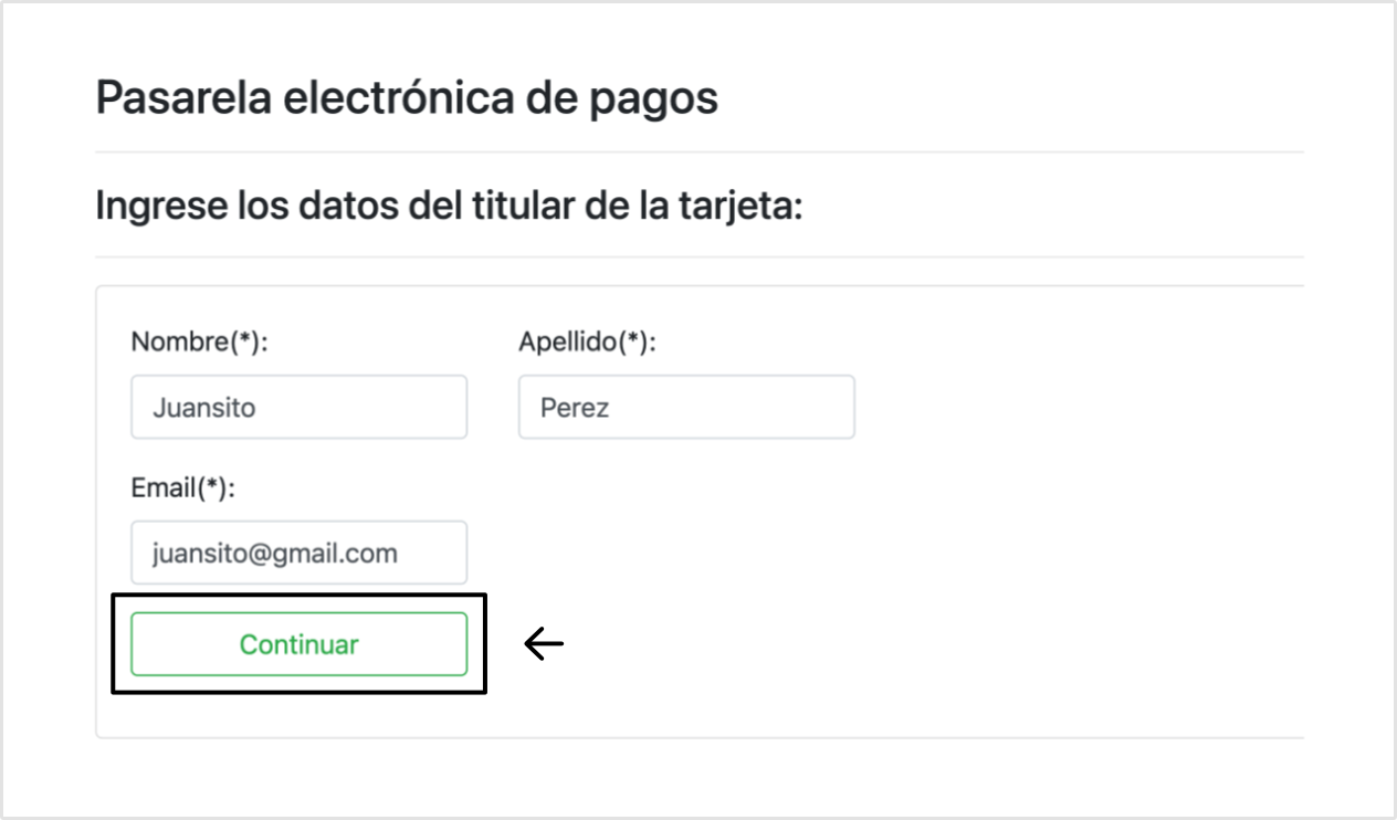 Llena los datos del titular de la tarjeta y luego clic en “Continuar”.